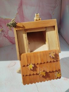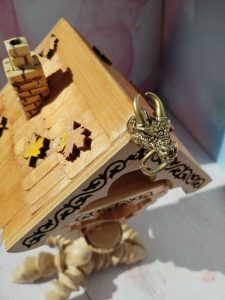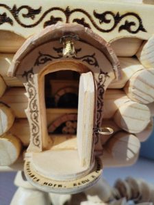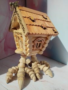 Может служить и по прямому назначению, небольшая шкатулка для колечек-цепочек. Местом, по традиции, определен чердак, поскольку сама изба занята русской печью в которой Баба-Яга готовит очередного Иванушку.