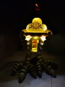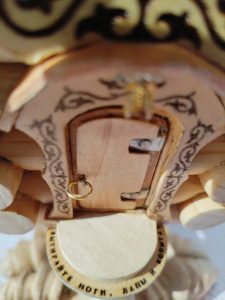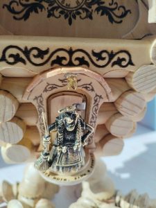 При заводе для запуска музыкальной шкатулки покрутить избушку по часовой стрелке, желательно не более 4-5 оборотов для продления службы музыкально-вращательного механизма. Вращать без завода, просто для, осмотра можно против часовой стрелки сколько угодно.